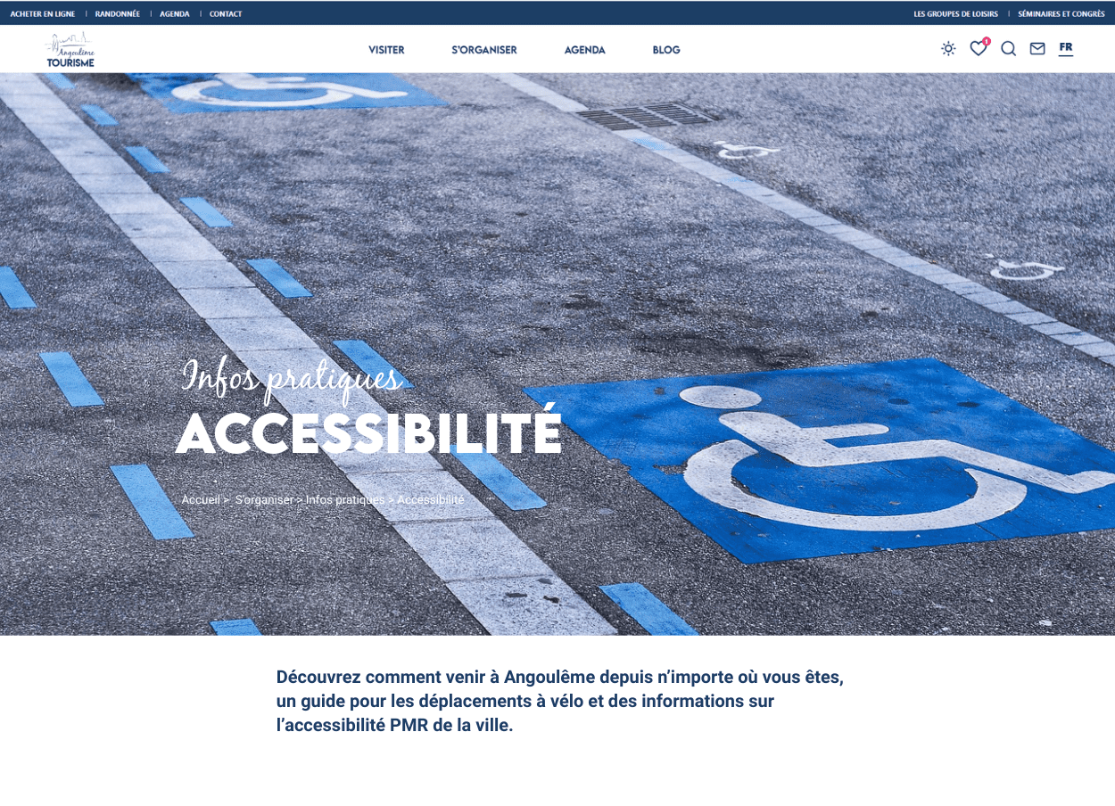 Enfin, j’ai réalisé une troisième et dernière version, en tenant compte des retours précédents. Cette maquette finale a été validée à la fois par Gaëlle Restoint et par le directeur David Guilbot. Elle respecte la charte graphique spécifique définie pour le projet qui était celle de Absolument Angoulême, met en valeur les contenus de manière claire et professionnelle, et donne une image valorisante du territoire auprès des cibles visées.